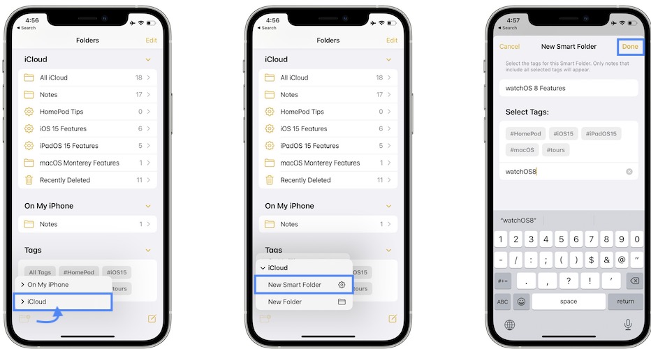 In the iOS 15 Notes app, you can also create a smart folder from a regular folder. For that, proceed as following :