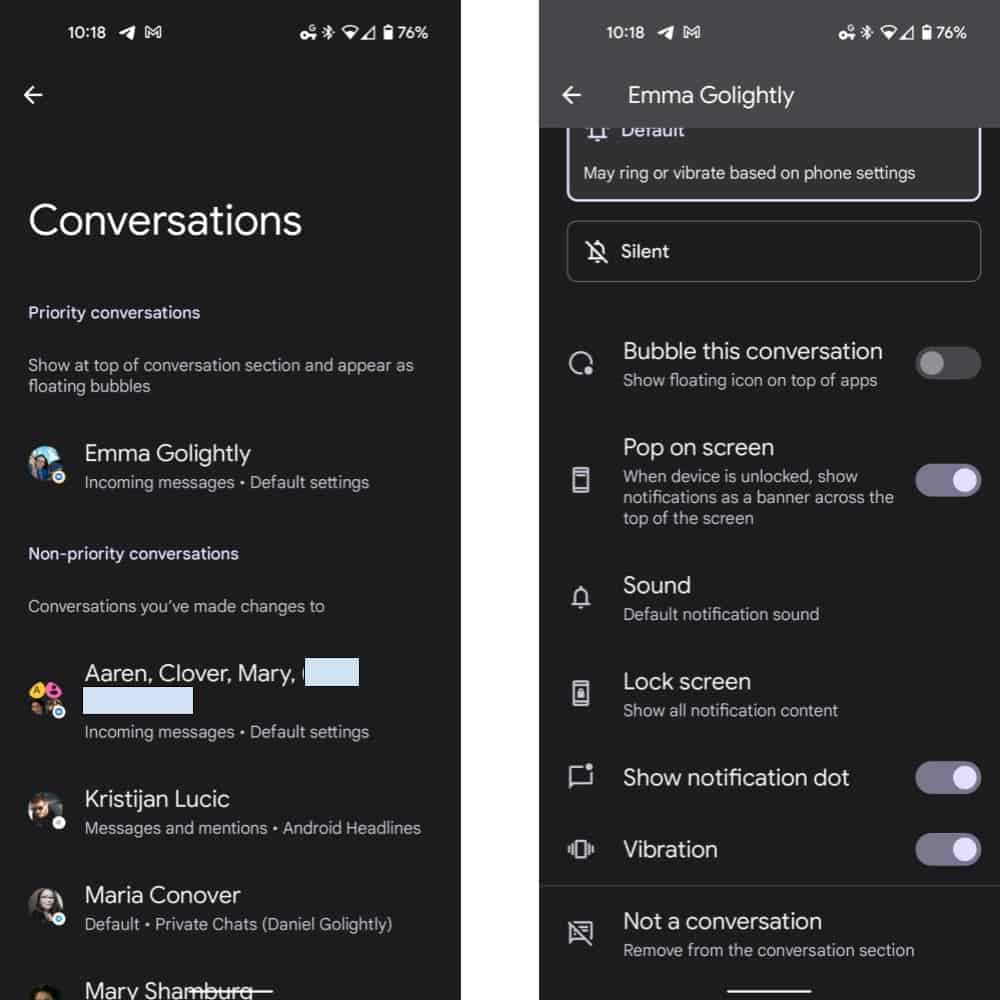 Interestingly on Android 11, you might not be able to see the Recent conversation list. So you’ll need to use the previous to set your conversations as a priority. You’ll see a list of ‘conversations you’ve made changes to,’ so if you haven’t fiddled with their settings recently they won’t show up there.