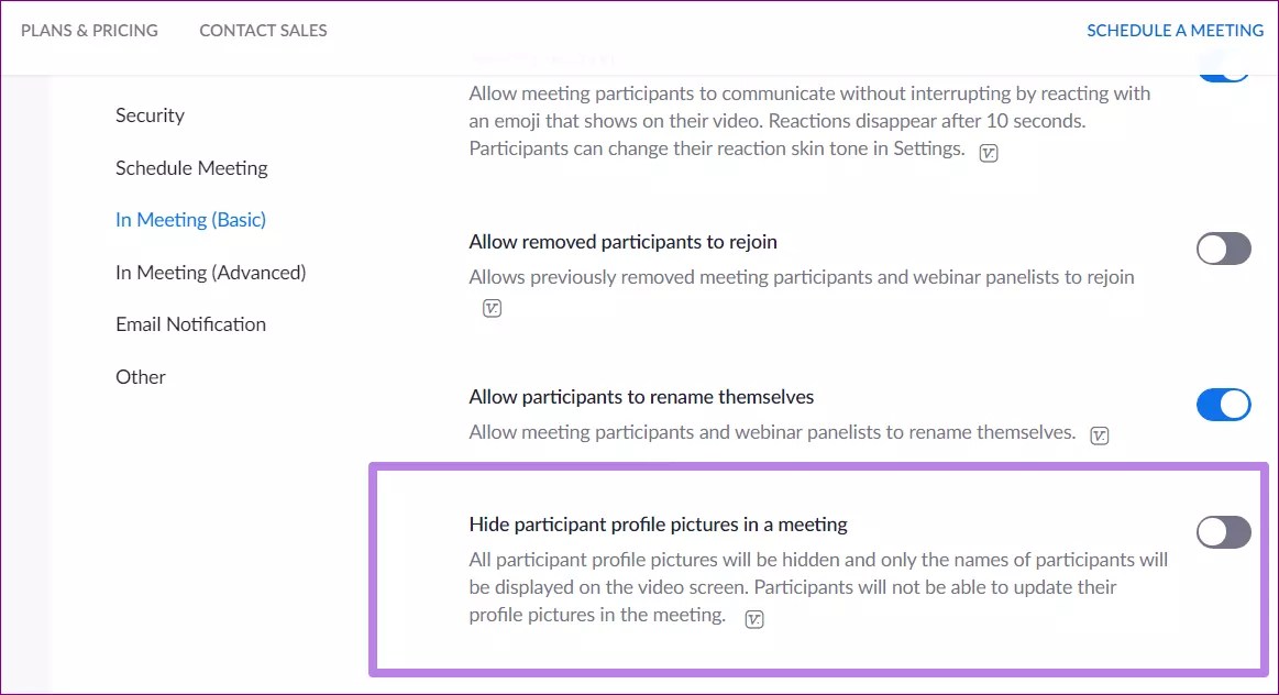 Technically, it should only hide all attendees’ profile picture when you’re a host, but for some users, it also hides their profile picture when they’re in a meeting hosted by someone else.