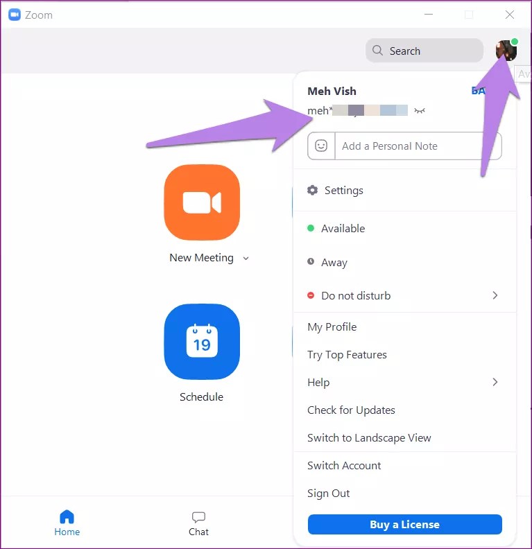 Pro tip: To check whether or not you are logged in to the Zoom desktop, click the profile picture icon. If you see your email address under your name, it means you’re signed in. Check if this is the correct account. Use the Change Account and Logout options at the bottom to log out of the account.