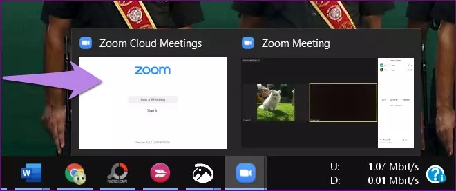 If you’ve already joined a Zoom meeting without signing in, hover over the Zoom icon and you’ll see two Zoom windows. Click on the first window where you will see the connection option. Log in with your Zoom details.
